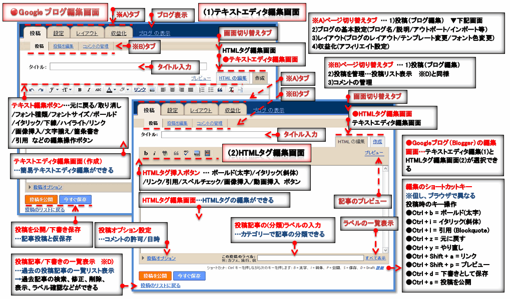 リンク▲ブログ(Blogger)の編集画面(3)/Google
